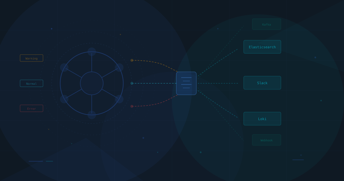 Kubernetes events tell you exactly what's going wrong in your cluster, but they vanish after 60 minutes. This guide walks through exporting them to Elasticsearch, Slack, Loki, and 30+ other destinations.